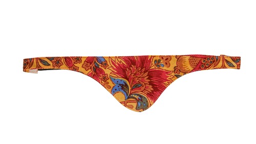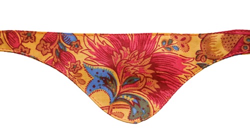 咲き乱れる花を黄褐色の生地でしっかりと受け止めるようなデザイン。華やかでありながらも全体のトーンはあくまでシックというバランスが実現しました。眼帯を装着する理由は色々あると思いますが、この眼帯は周りを華やいだ気持ちにさせてくれると思います。